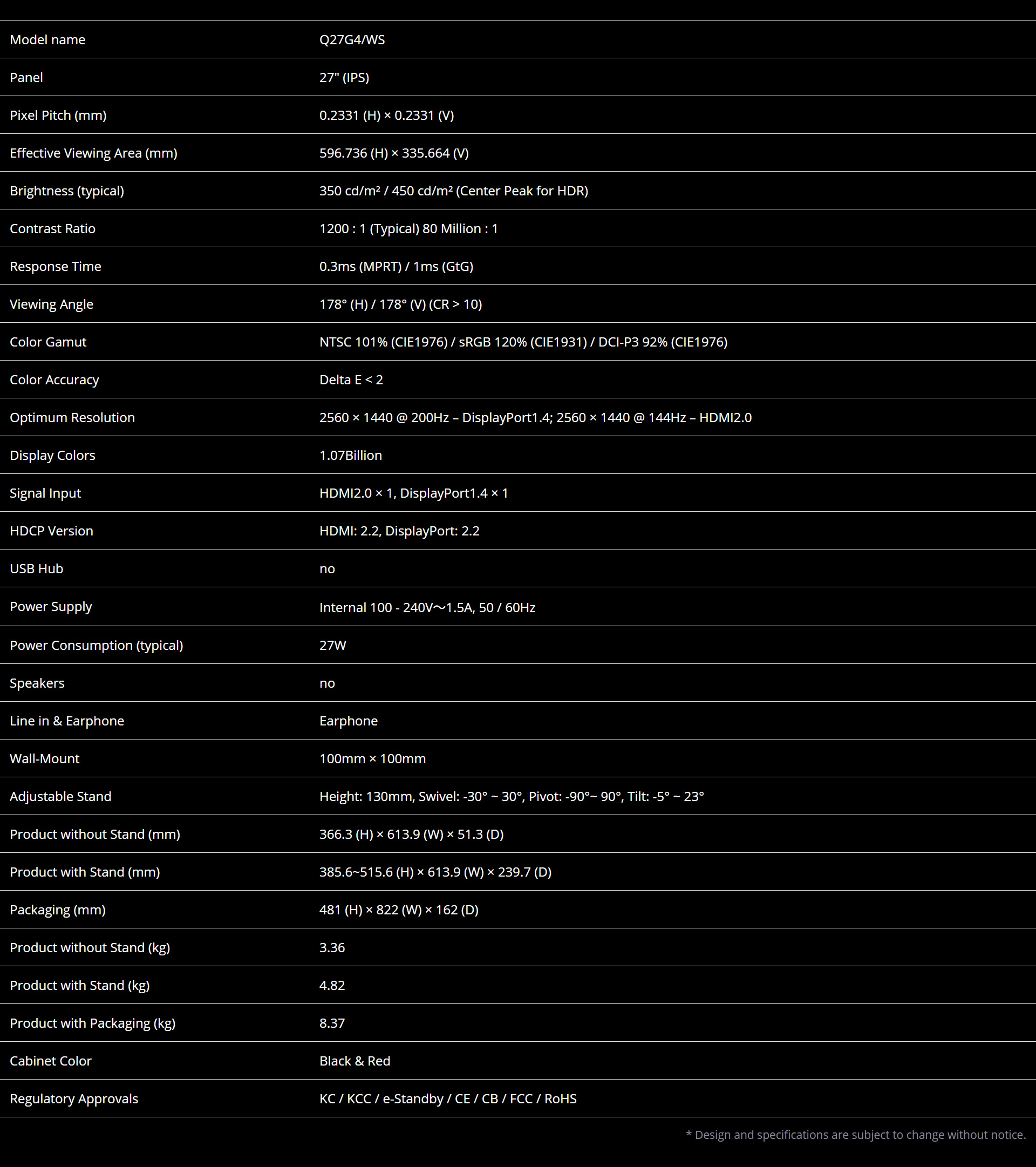 AOC Q27G4/WS - 27" Fast IPS QHD 200Hz Gaming Monitor