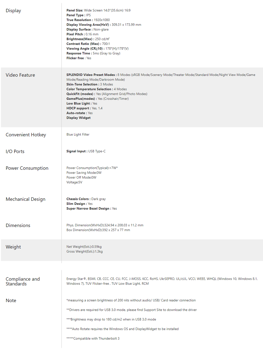 ASUS ZenScreen MB14AC Portable USB Monitor - 14 FHD IPS USB-C