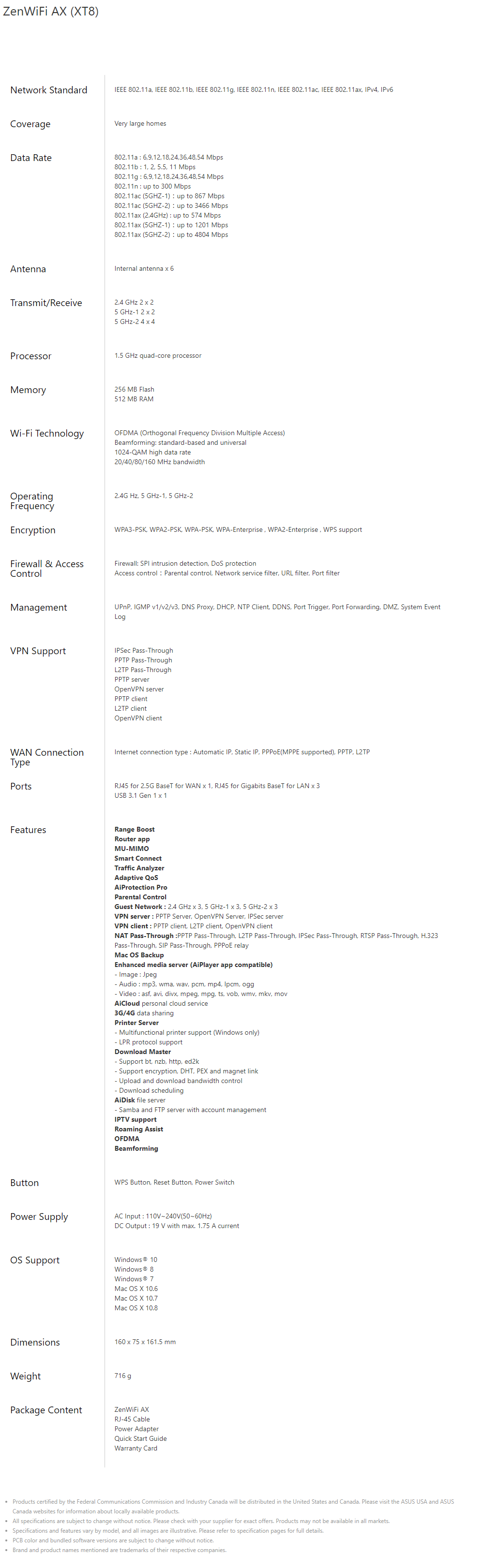 Asus ZenWiFi AX XT8 AX6600 Whole-Home Tri-band Mesh WiFi 6 (Black)