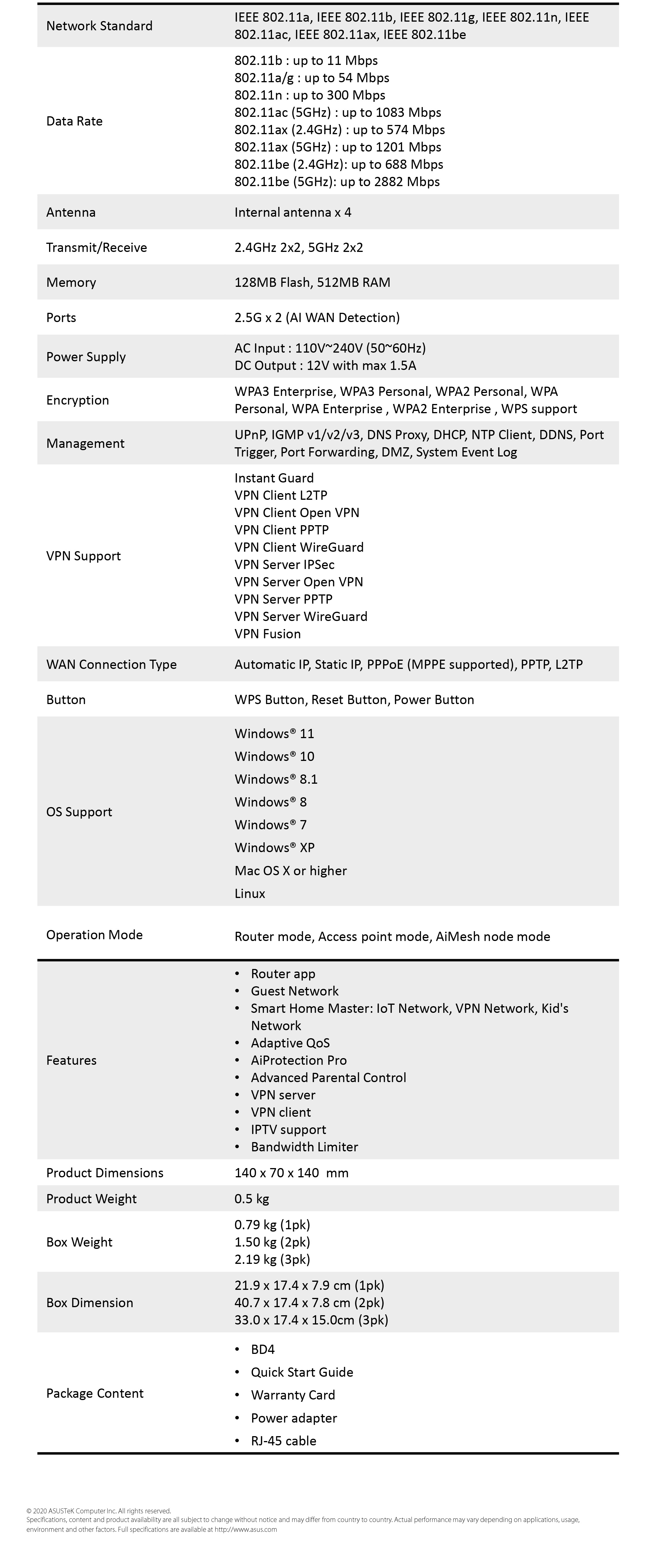 ASUS AiMesh technology boosts coverage up to 6500 sq. ft. (3-pack) and easy extendibility with compatible ASUS routers for seamless and secure whole home WiFi