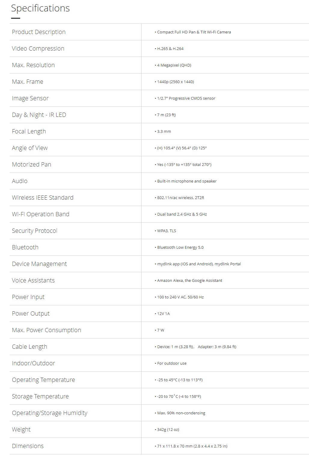 • 2K QHD 1440P resolution with 360° views (270° pan)