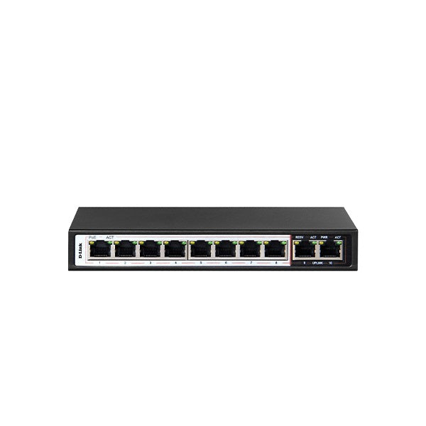 D-Link DES-F1010P-E 250M 10-Port Fast Ethernet Switch with 8 PoE Ports and 2 Uplink Ports