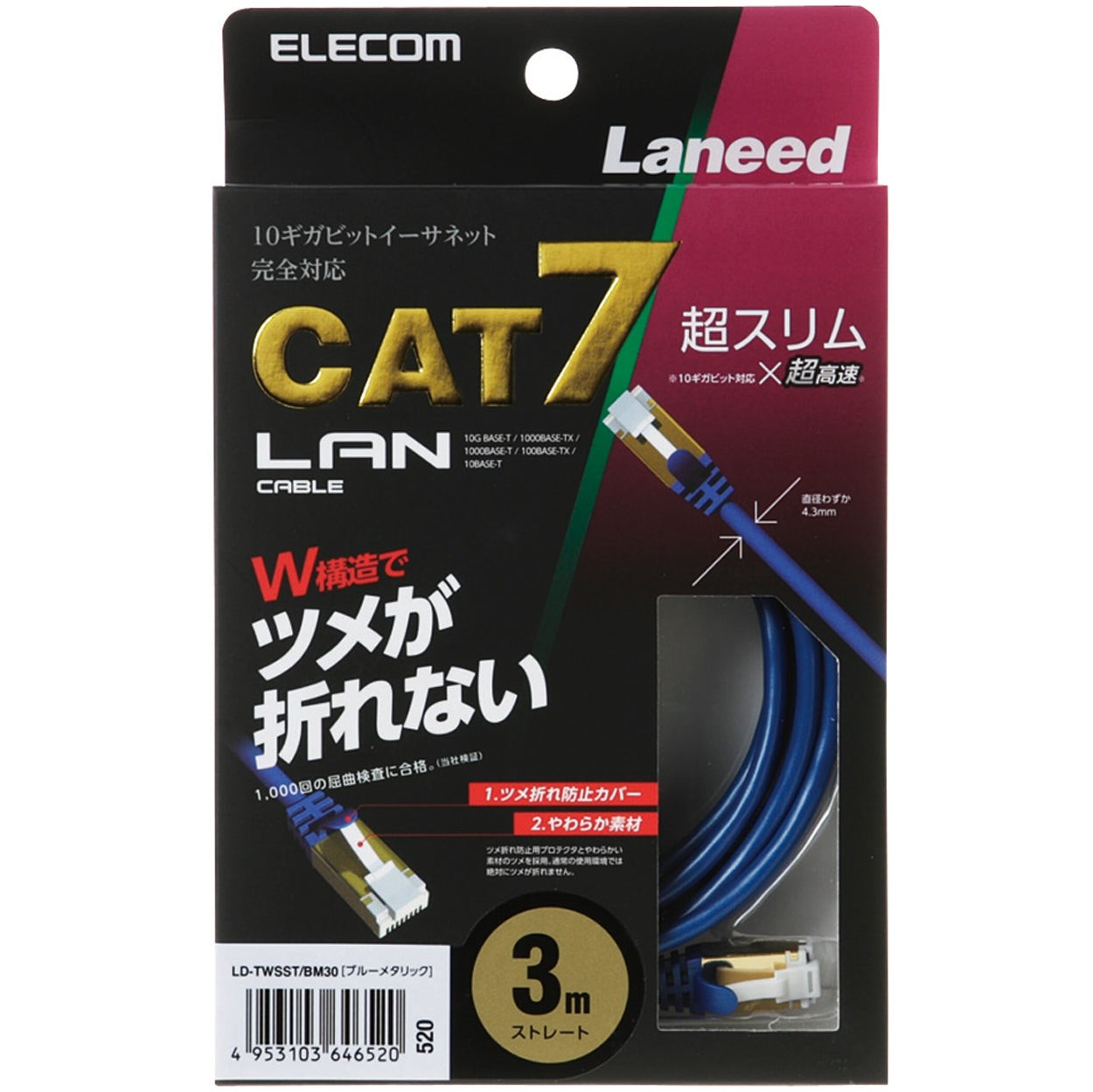 Elecom Slim LAN Cable 3m (Blue)