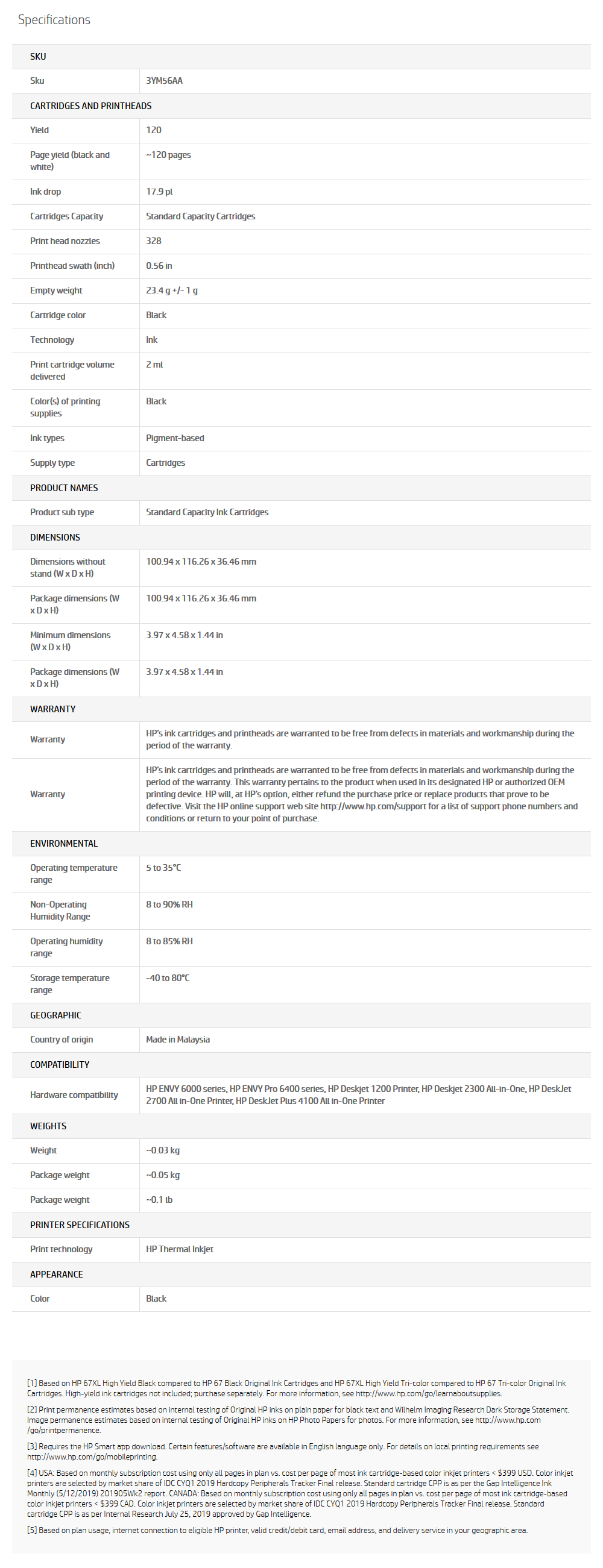 HP 67 Black Original Ink Cartridge (3YM56AA)