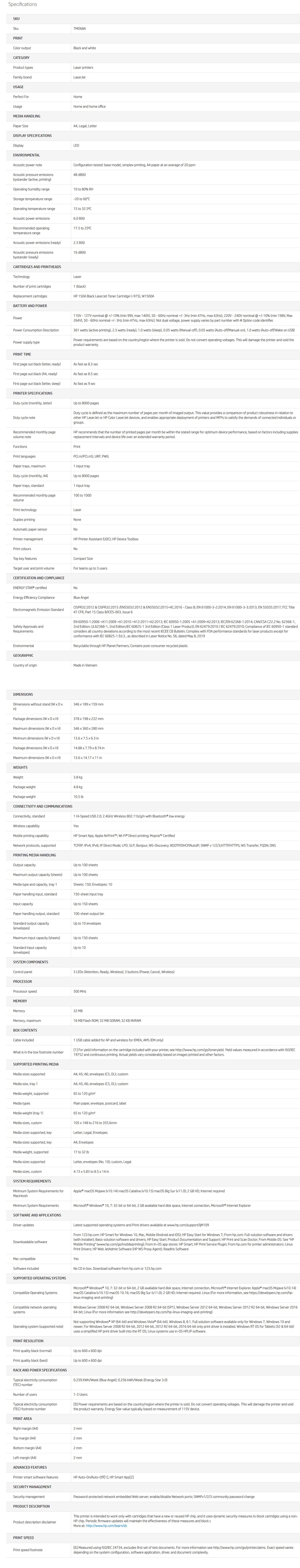 HP LaserJet M111w Printer (7MD68A)