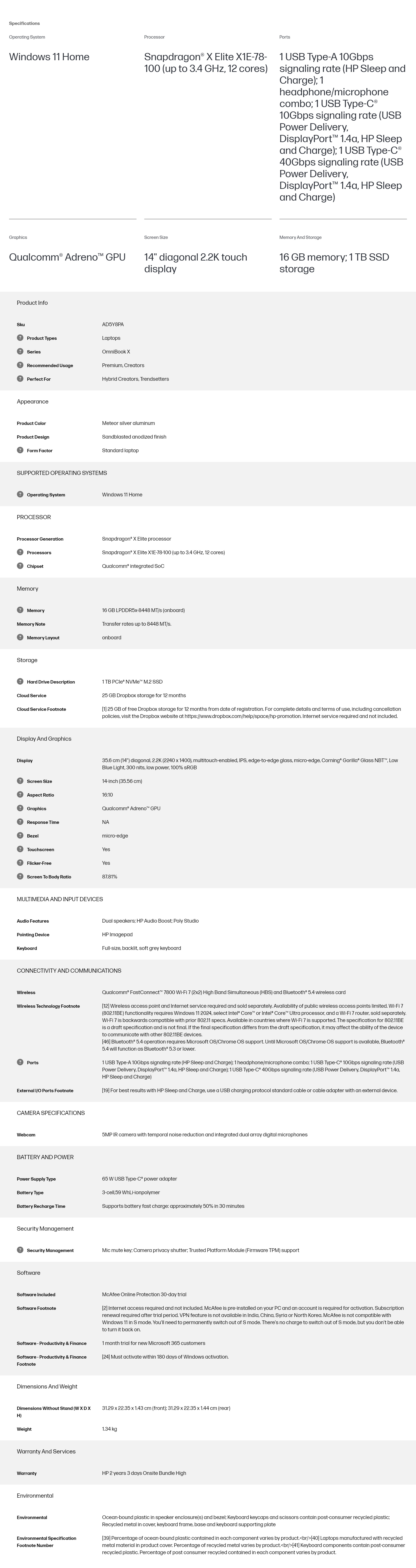 HP OmniBook X 14-fe0020QU QC X1E-78-100 16GB 1TB 14