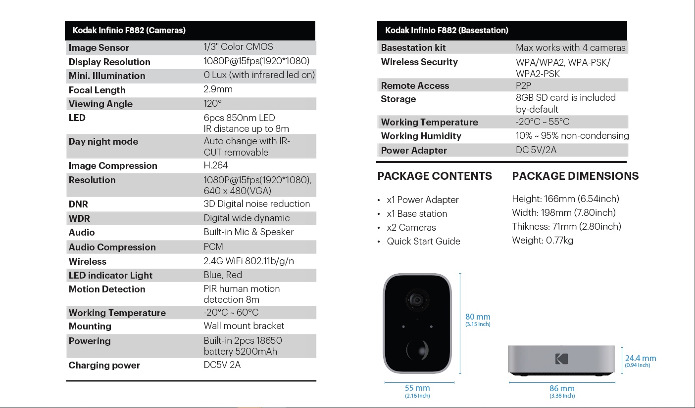 Kodak F882 Infinio Indoor/Outdoor Twin pack Security Camera