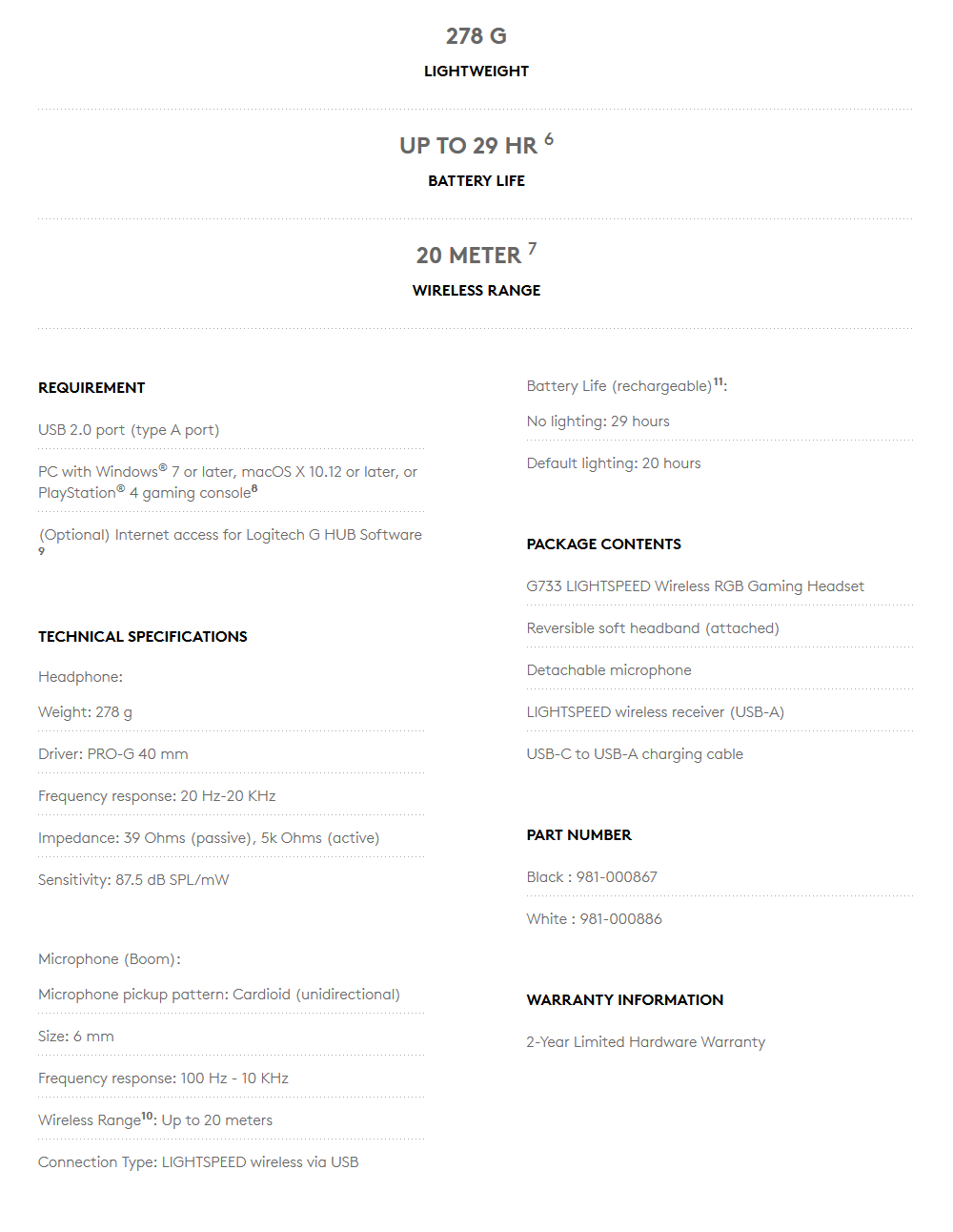 Logitech G733 Wireless RGB Gaming Headset (Black)