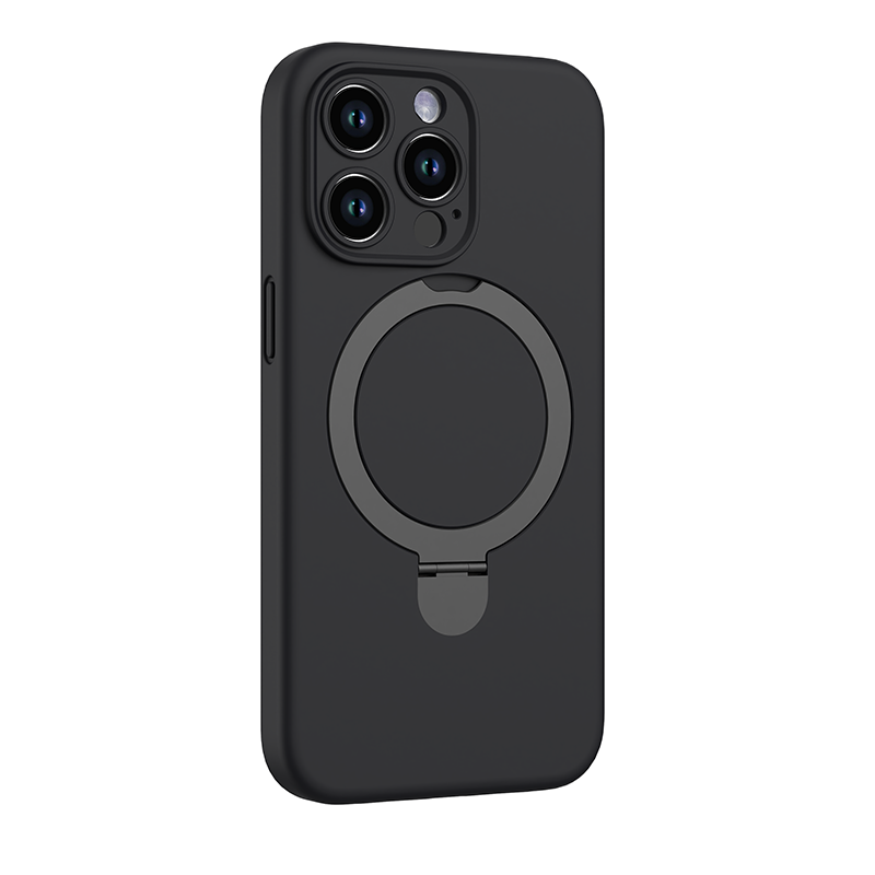 N.Brandz iPhone 15 Pro Liquid Silicon MagSafe Ring Stand Protective Case (Black)