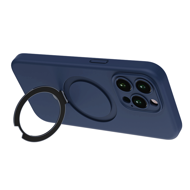 N.Brandz iPhone 15 Pro Max Liquid Silicon MagSafe Ring Stand Protective Case (Navy)