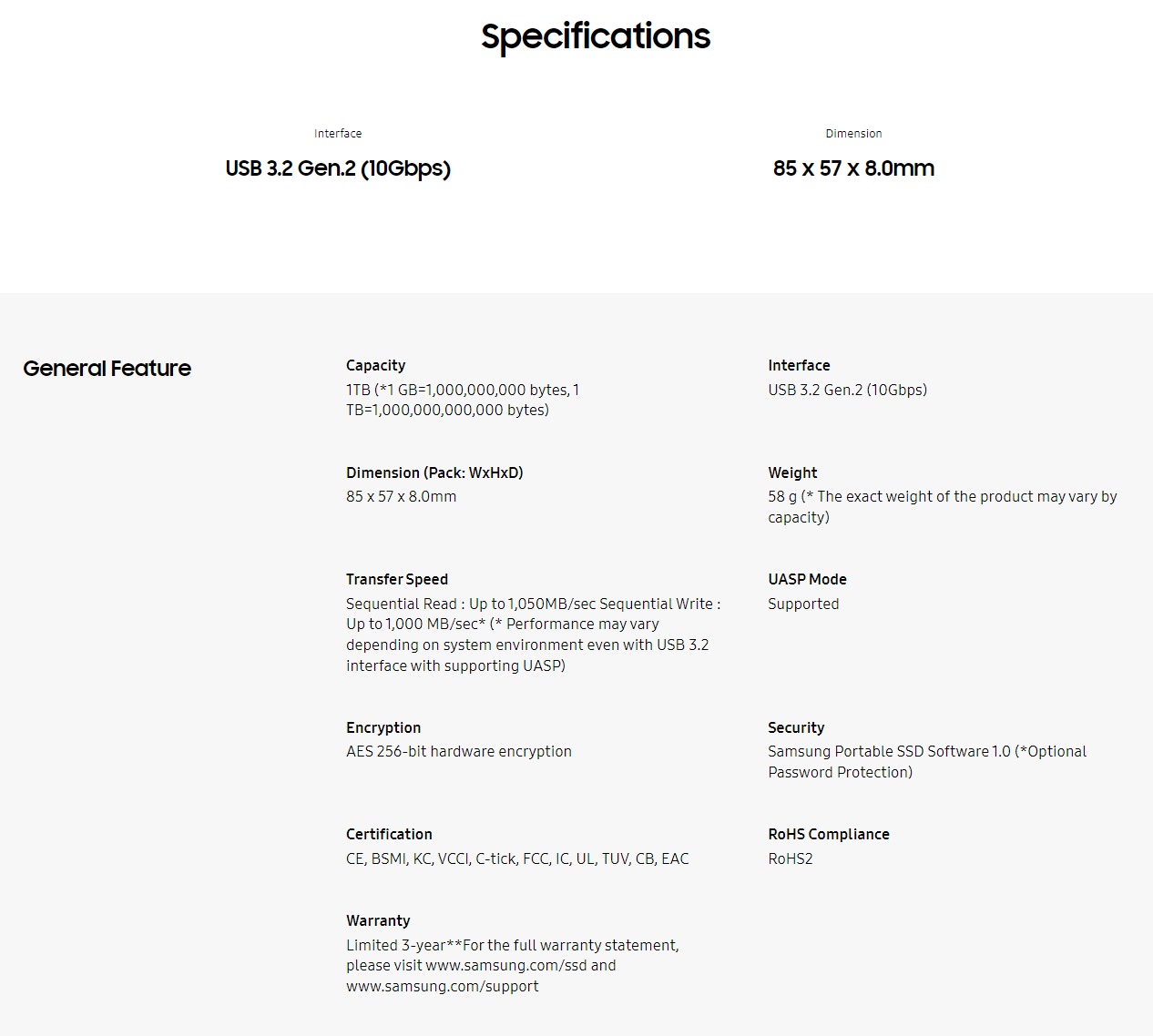 SAMSUNG T7 PORTABLE SSD 1TB (Titan Grey)