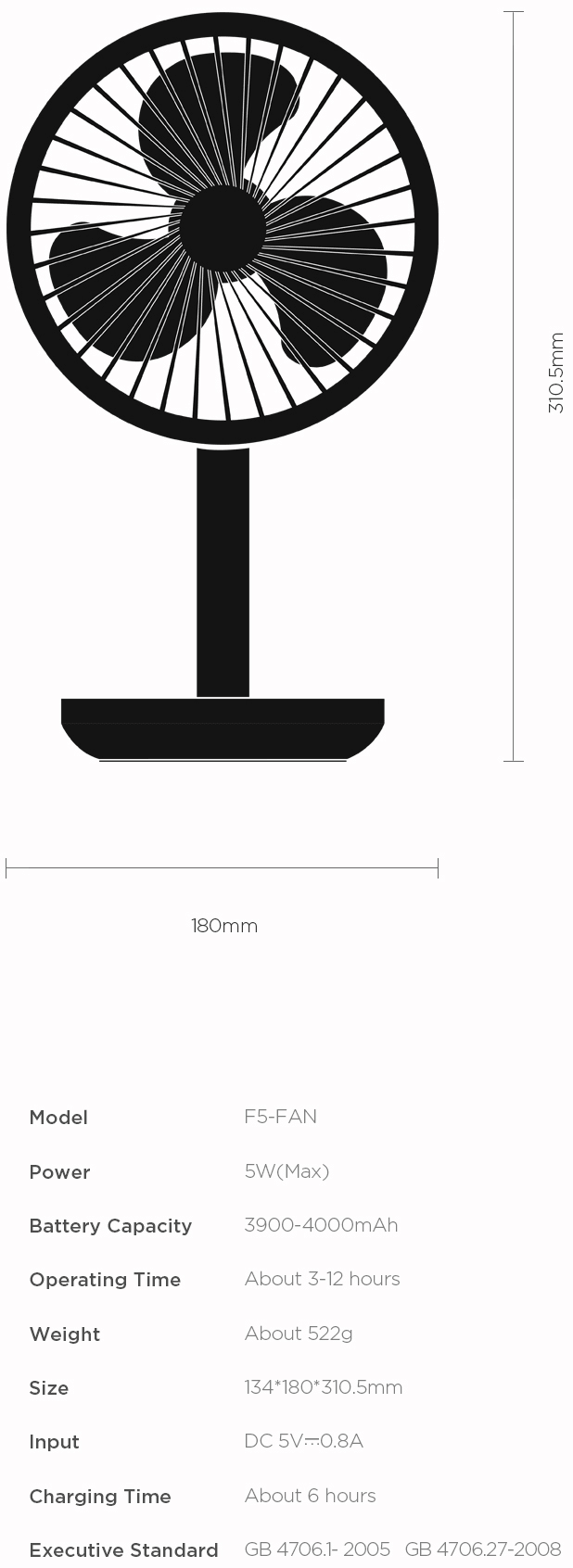 SoLove MI F5-White Desktop Fan Rechargeable Battery Operated