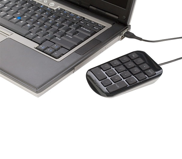The Targus Numeric Keypad allows users to type numbers into spreadsheets and other applications quickly and easily. The full-size 19mm keys improve speed and accuracy by making it easier to locate and press the numbers you are looking for. The integrated ergonomic tilt provides added comfort which helps reduce strain after a long workday. The USB cord is 3 feet / 90 cm long to provide additional flexibility in the workspace. The Targus Numeric Keypad is ideal for office or home use.