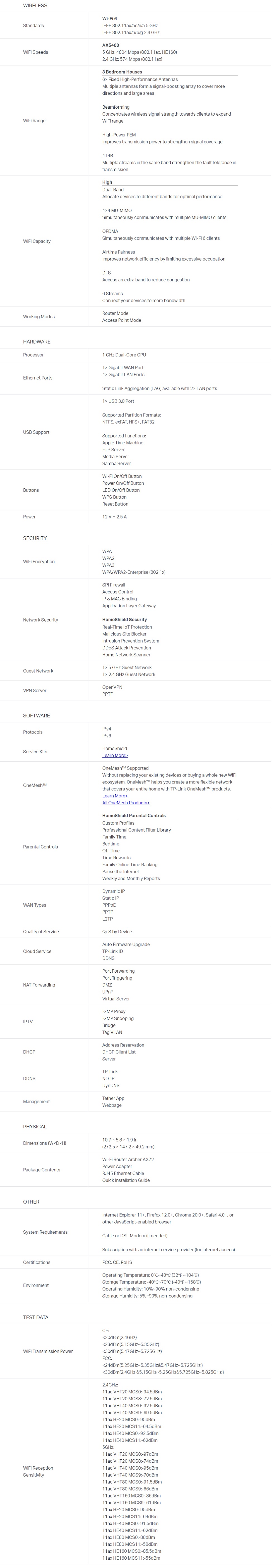 TP-Link Archer AX72 AX5400 Dual-Band Gigabit Wi-Fi 6 Router